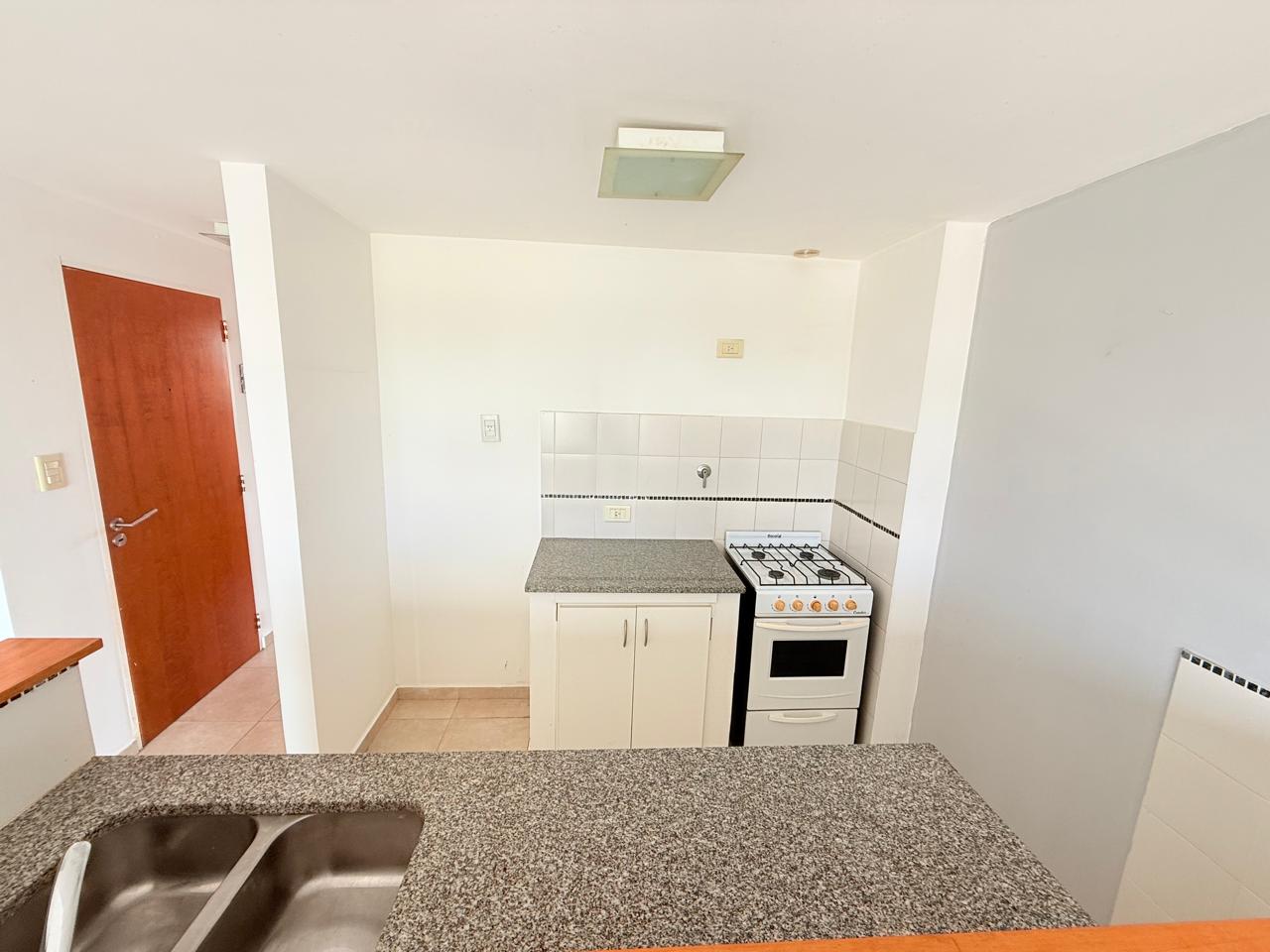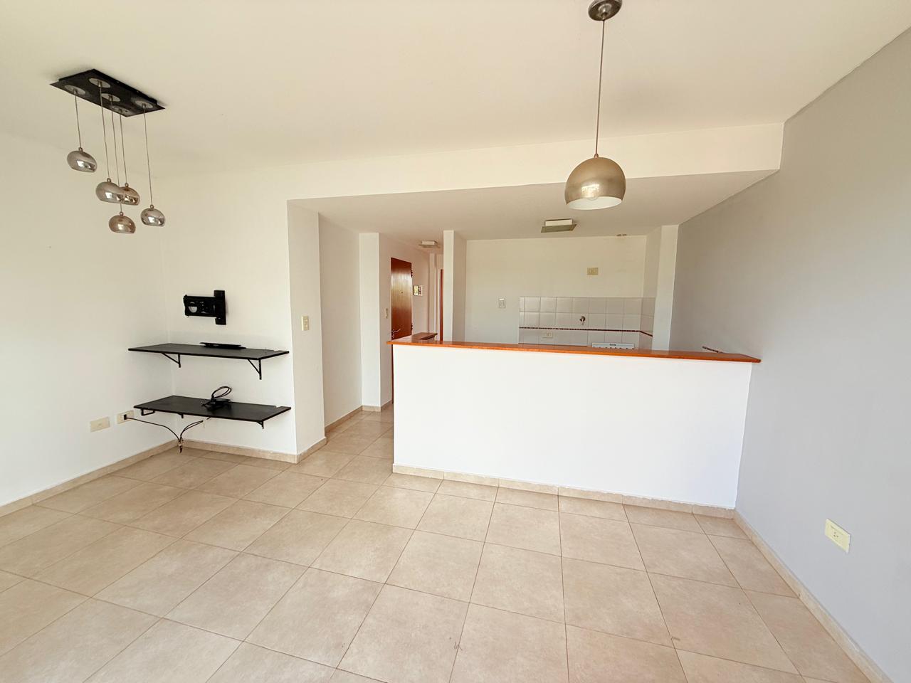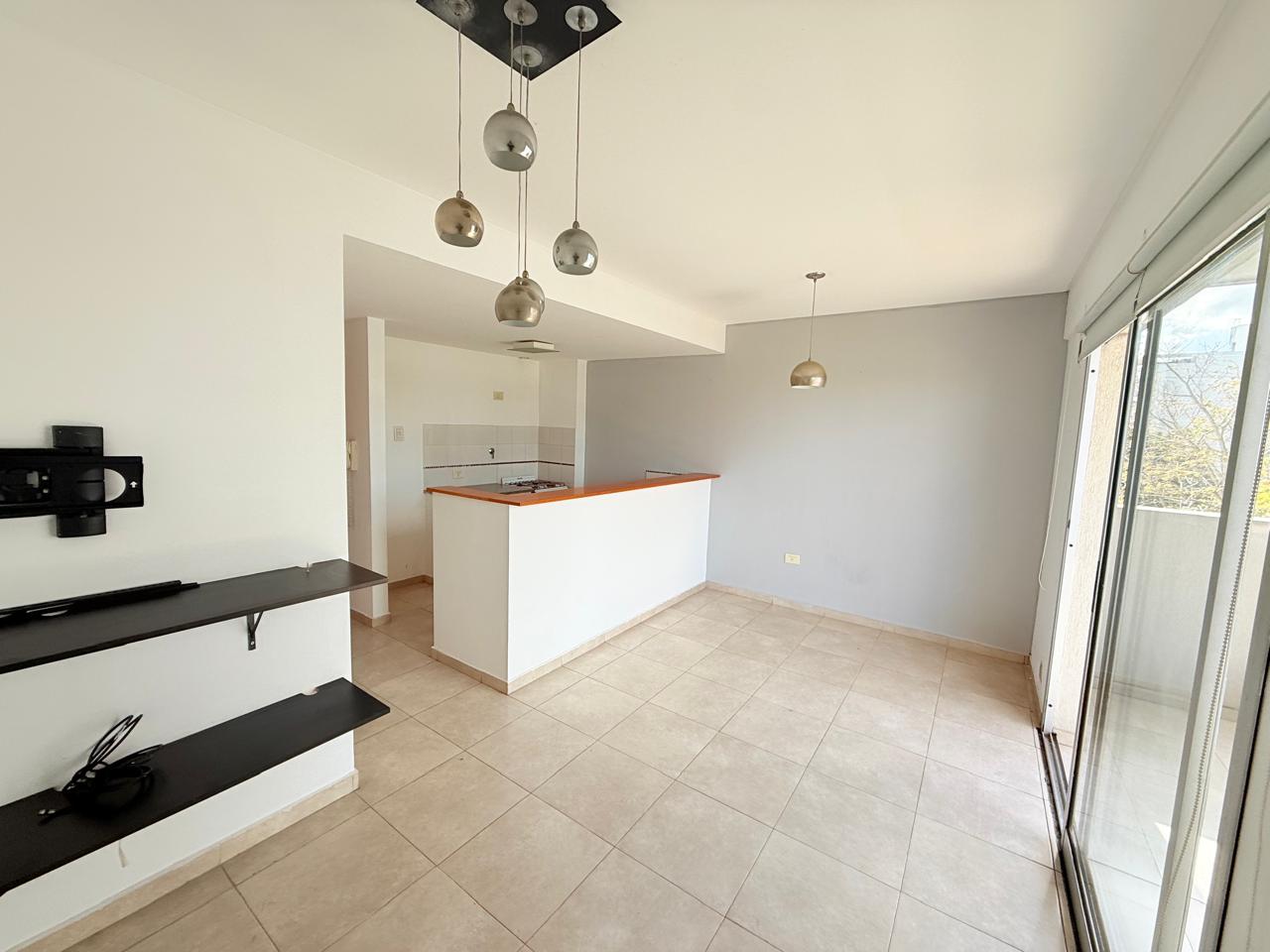 Departamento en alquiler un dormitorio con balcón a frente. Cuenta con cocina separada con barra, conexión para lavarropas, living-comedor con amplio balcón, dormitorio con placard y aire acondicionado, baño completo.