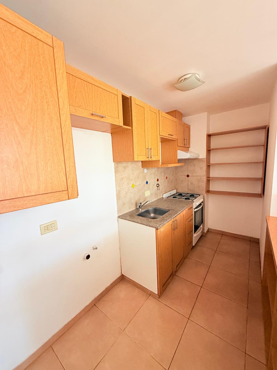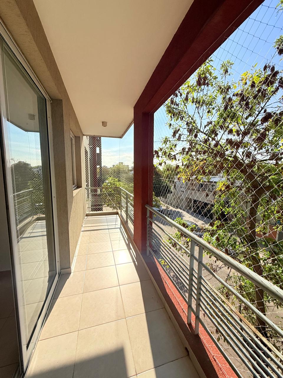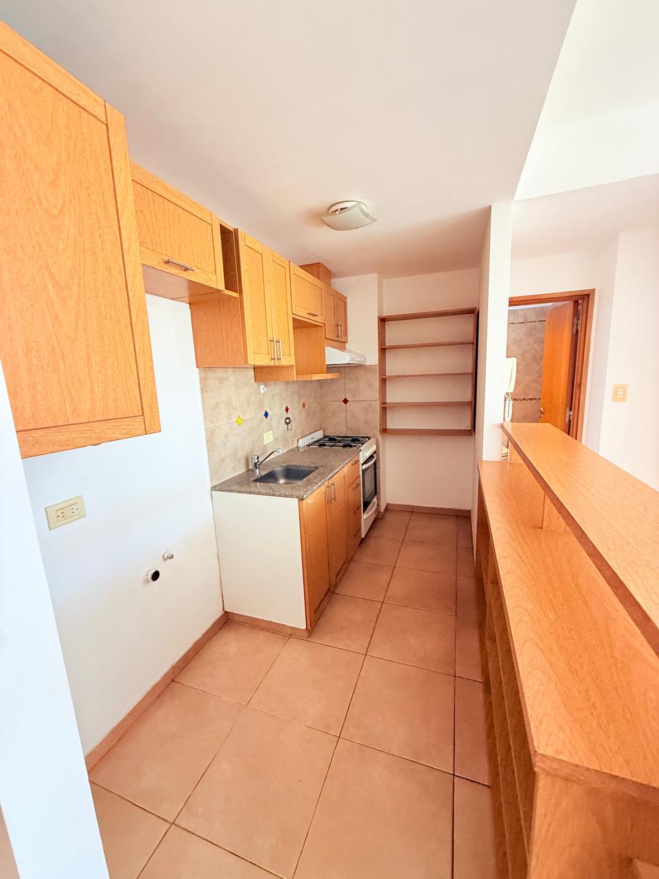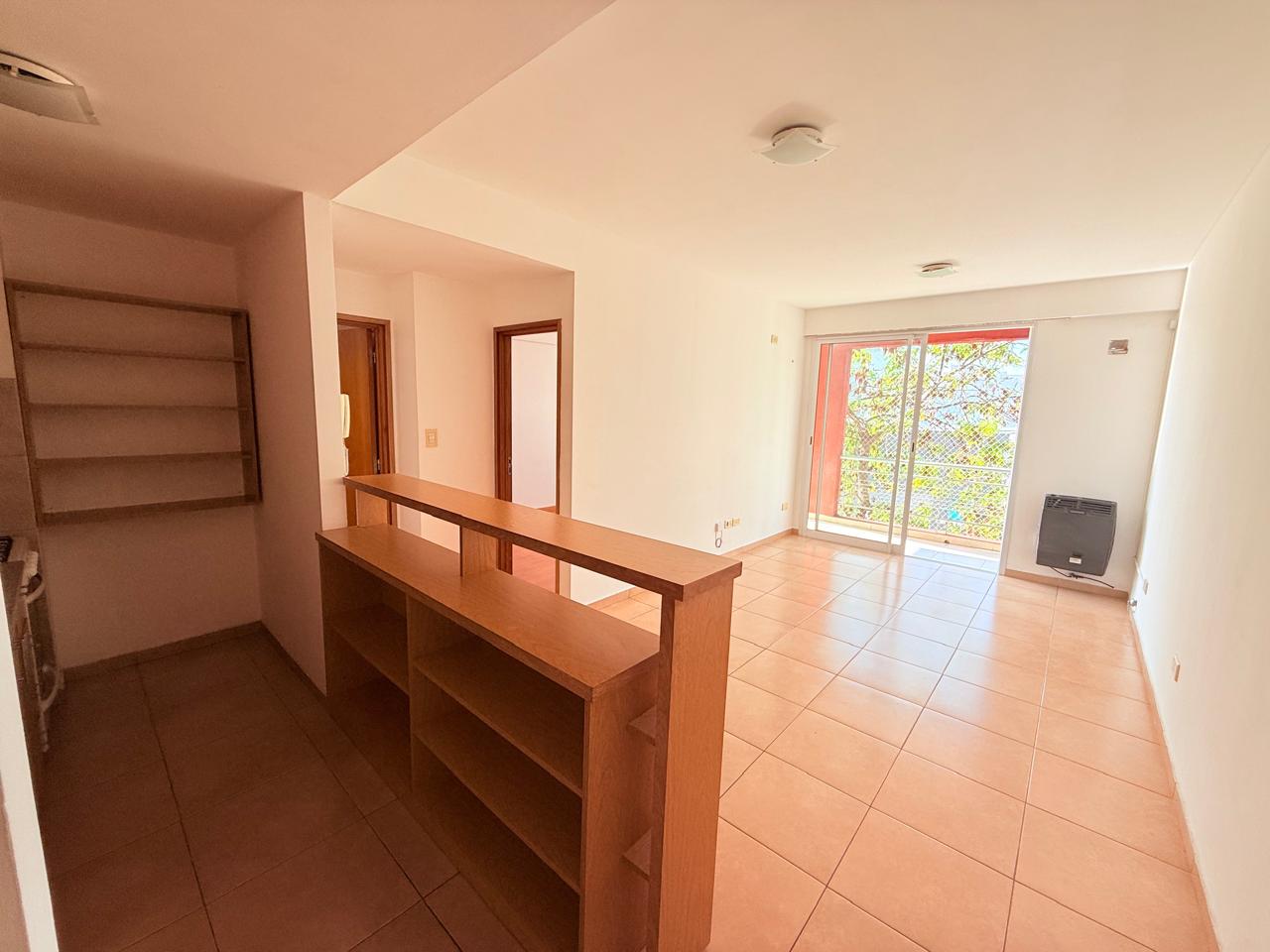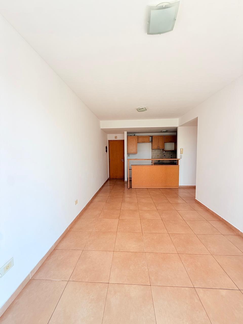 Departamento en alquiler un dormitorio con balcón a frente. Cuenta con cocina separada con barra, conexión para lavarropas, living-comedor con amplio balcón, dormitorio con pisos de madera y placard y baño completo.