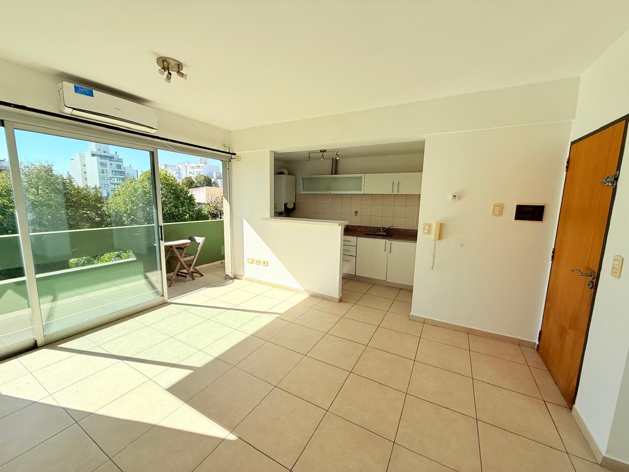 Cuenta con cocina separada con barra, conexión para lavarropas, living-comedor con amplio balcón y aire acondicionado, dormitorios con placard y baño completo.