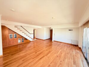 Se trata de un contrafrente luminoso, con cocina separada con espacio para lavarropas, dormitorio con placard y pisos de madera, baño completo y estar-comedor con ventanas y puerta para acceder al balcón.