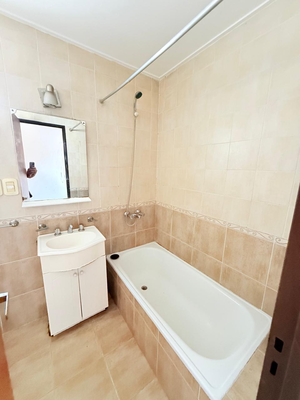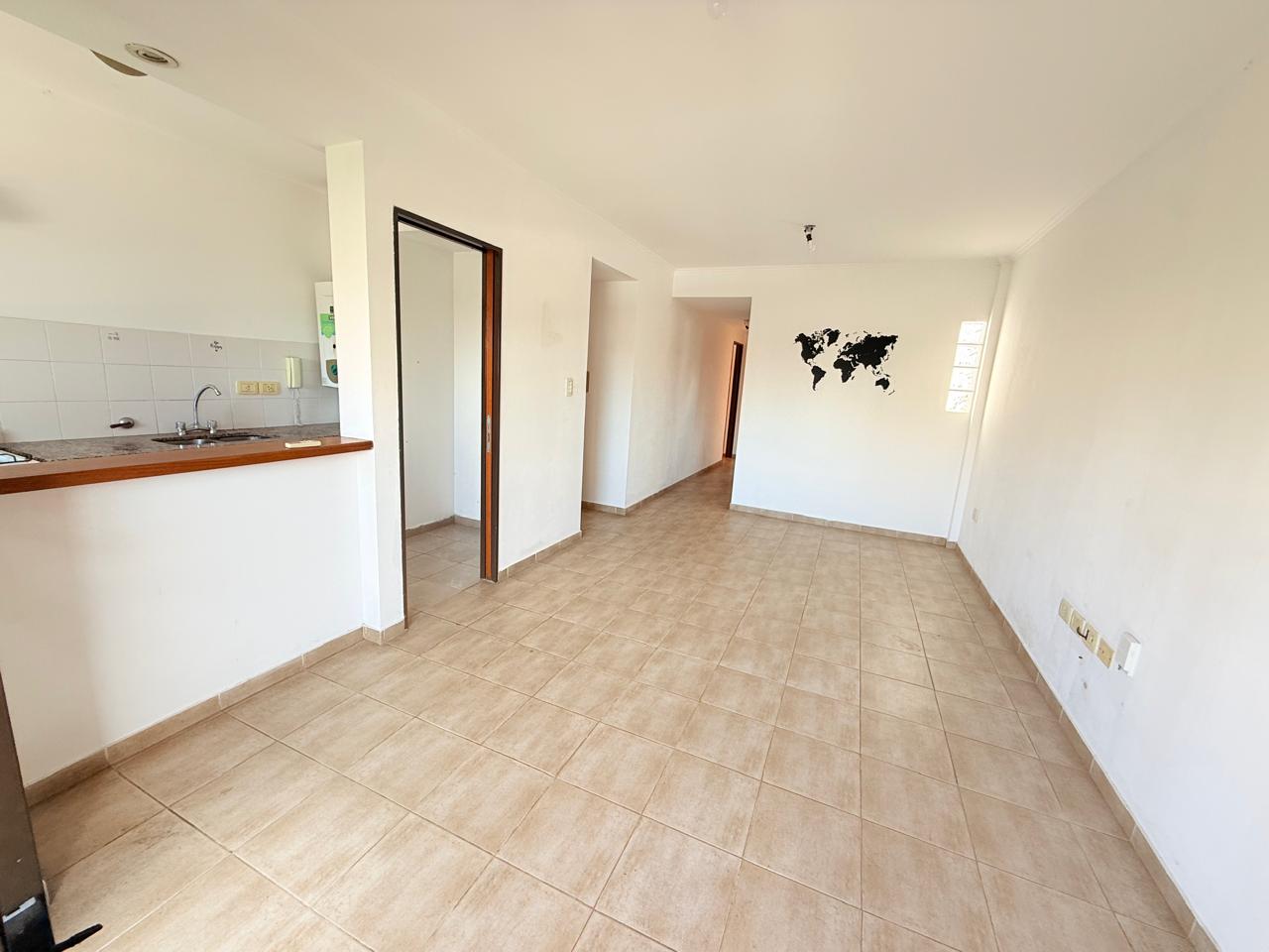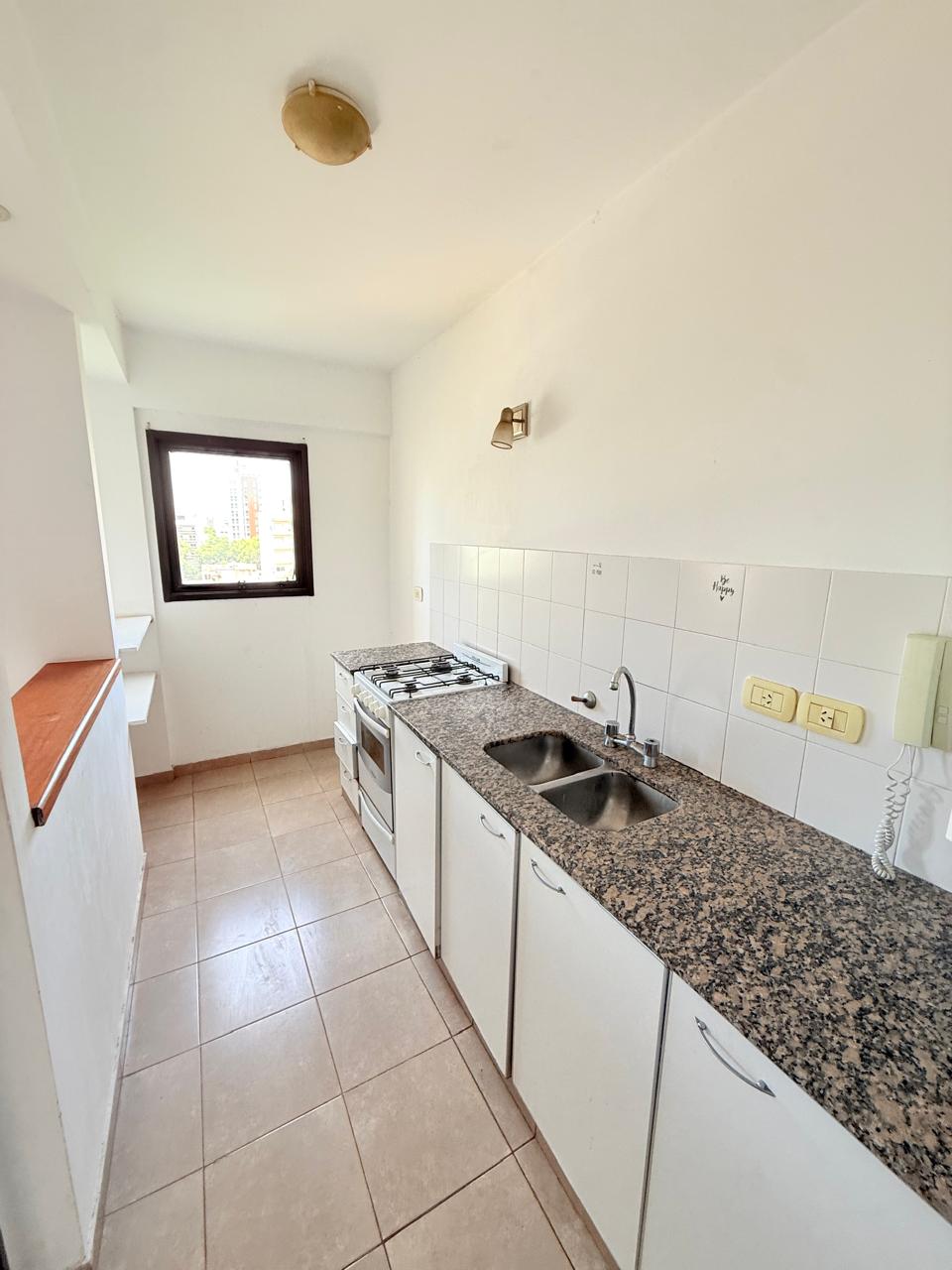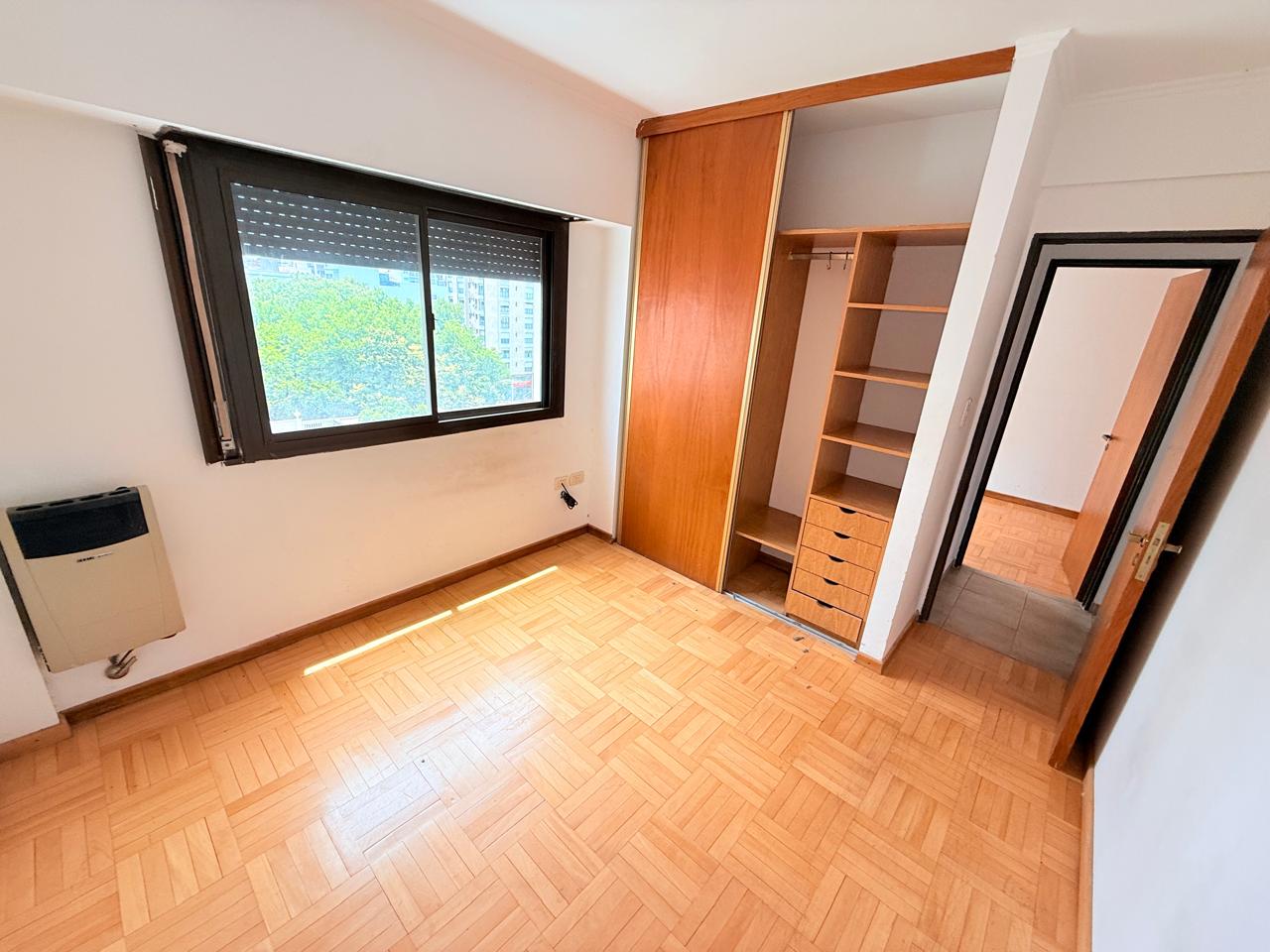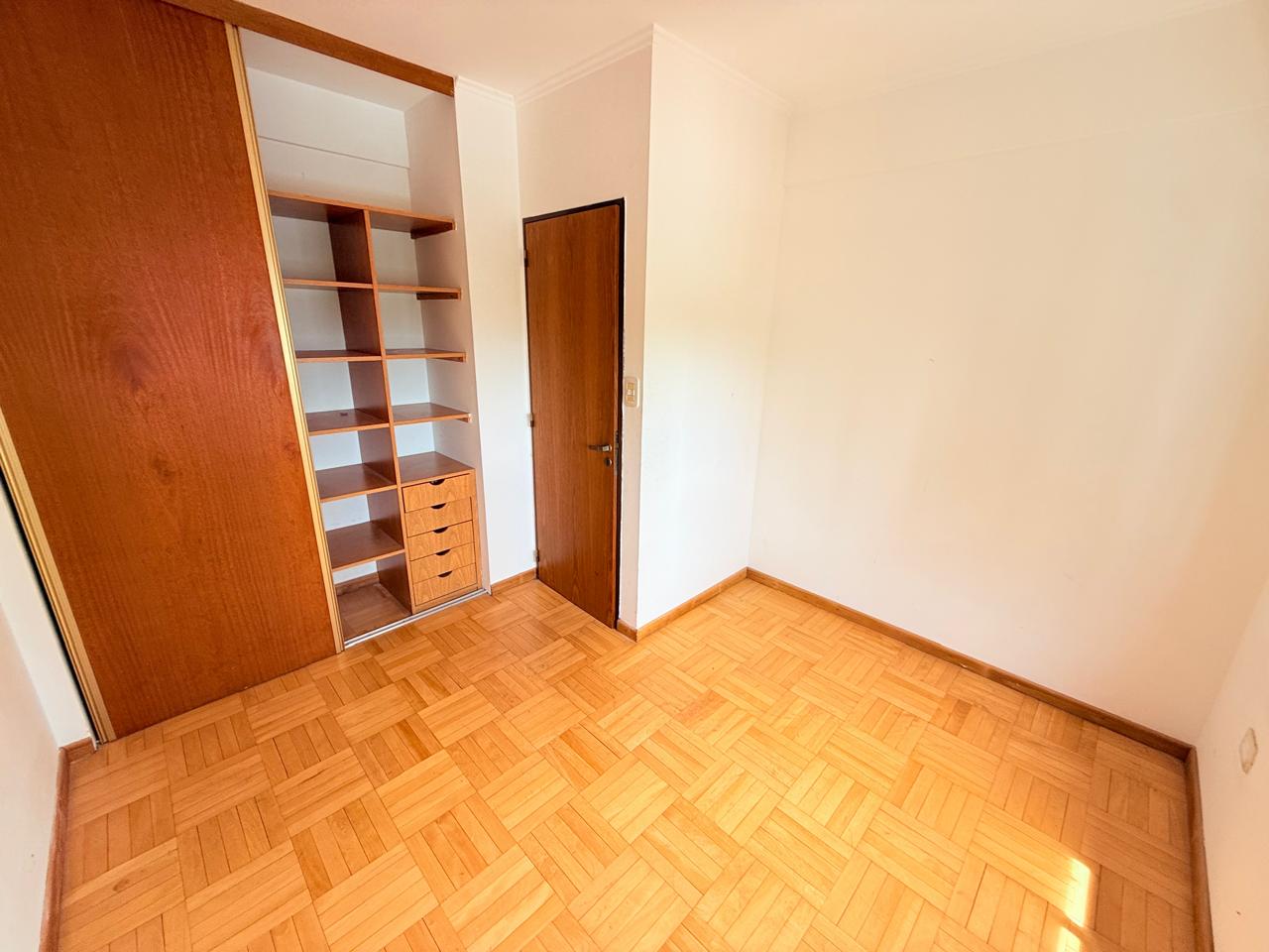 Departamento en alquiler de dos dormitorios con al frente con cochera. Cuenta con cocina semi-integrada con conexion para lavarropas, living-comedor con balcon, dormitorios con pisos de madera y placard y baño completo.