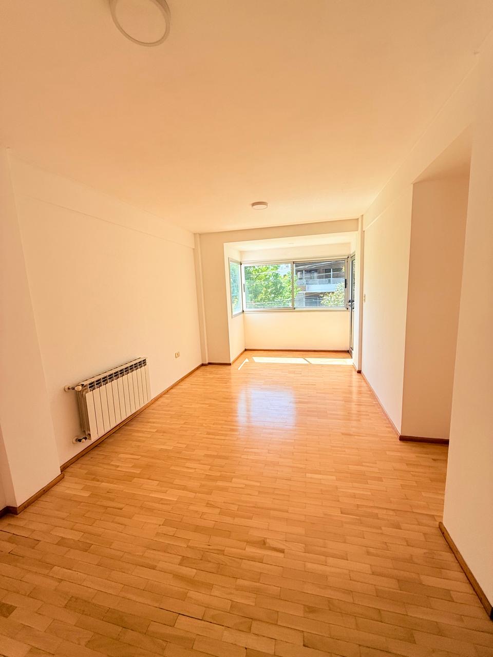 Living-comedor muy luminoso con pisos de madera con tratamiento hidrolaqueado, con acceso directo al balcón, ideal para recibir visitas o disfrutar de la luz natural.